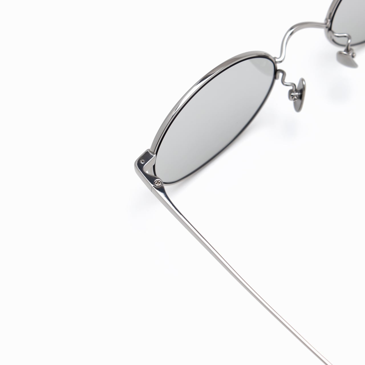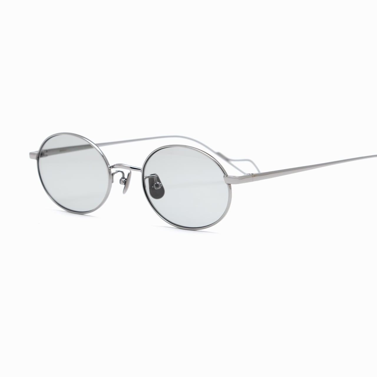 細身のシルバーメタルが顔に自然に溶け込み、繊細で洗練された印象をつくります。