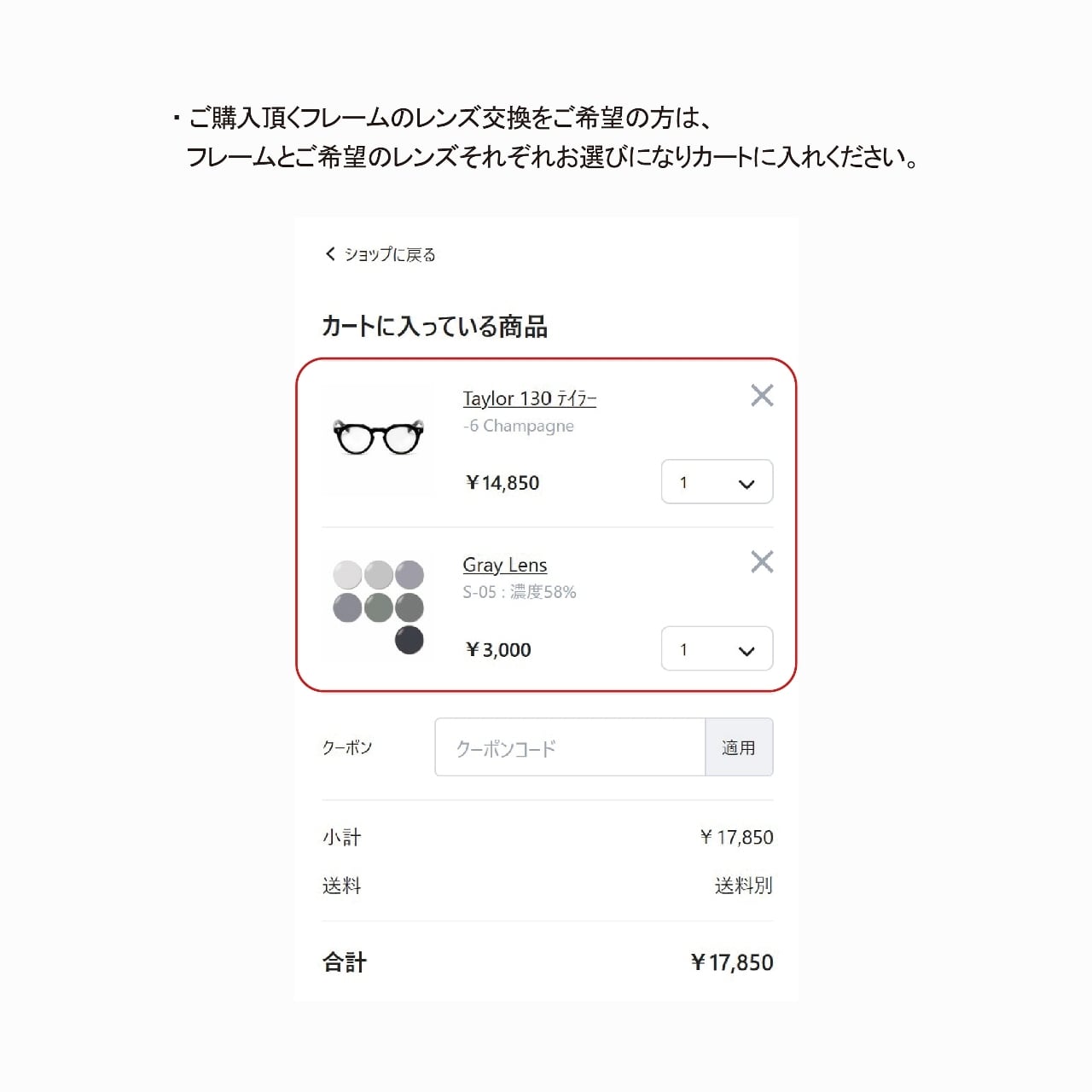 ・フレームとご希望のレンズをそれぞれお選びいただき、カートにお入れください。